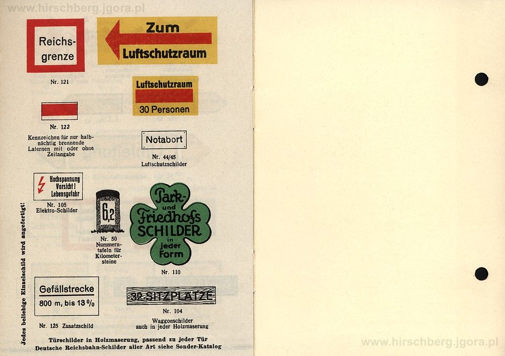 Heinrich Hübner Preßstoff-Schilder-WerkKatalog firmy Heinricha Hübnera produkującej szyldy, znaki i tablice informacyjne, 6 stron.