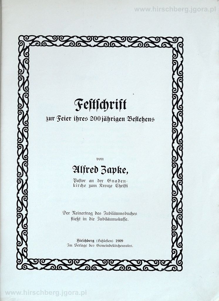 Die Gnadenkirche zum Kreuze Christi in Hirschberg=SchlesienMonografia Kościoła Łaski autorstwa Alfreda Zapke,